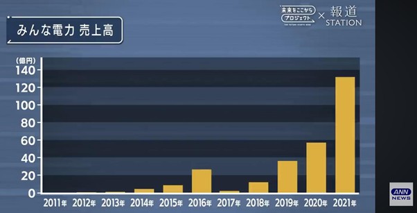 *圖說:人人電力至2021年度之前的營業額,大體上一路成長到130億日圓左右。(來源:全日本新聞網)