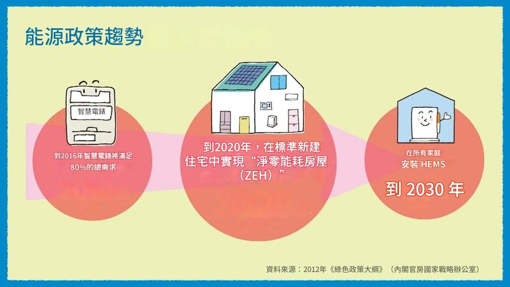 *圖說:日本能源政策流程,在智慧電表、零能源消費房屋普及後,