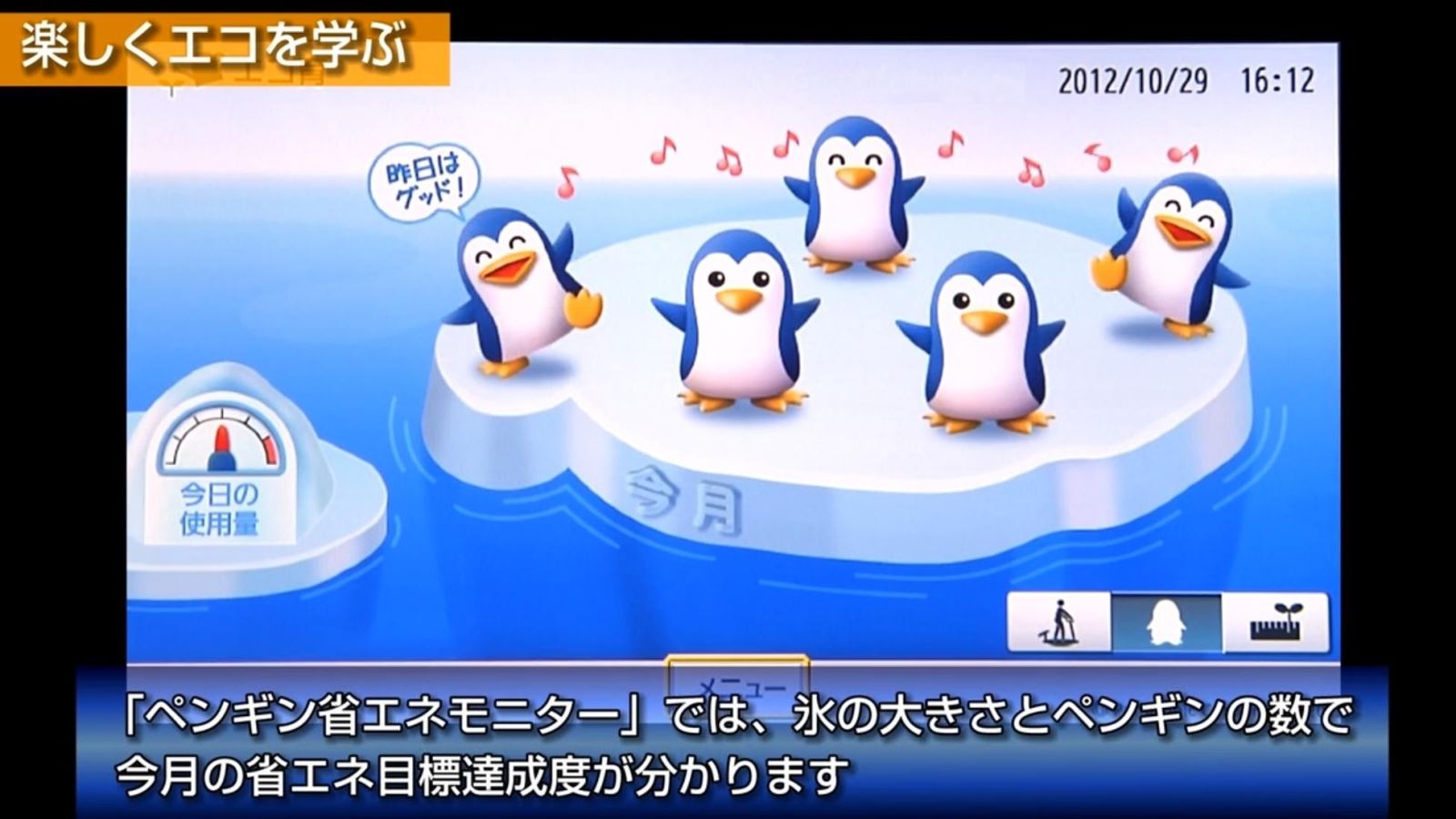 *圖說:松下家用管理系統HEMS節能成果示意圖。HEMS為家戶規劃節電方案,如果達成,避免氣候變遷,浮冰不會溶解,保住企鵝的家😌,反之,企鵝就會摔到海裡😱。(來源:日本松下