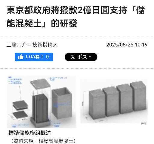*圖說:日本經濟新聞截圖,東京都投資蓄電水泥的研發。圖片經翻譯軟體處理。(來源:日本經濟新聞)