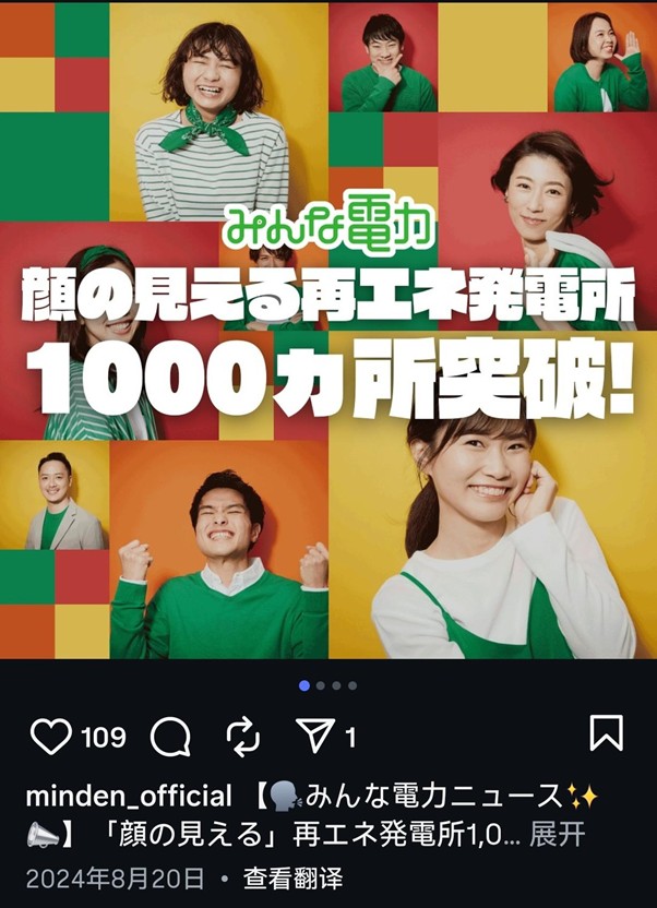截至2024年7月,供電給人人電力,無爭議令人安心的再生能源發電廠,數量已突破1000家(上圖)。包括知名相機品牌RICOH在內,有4200家法人,與15000名個人,成為人人電力的客戶,讓該公司營業額超過百億日圓,並得到日本政府的表揚。