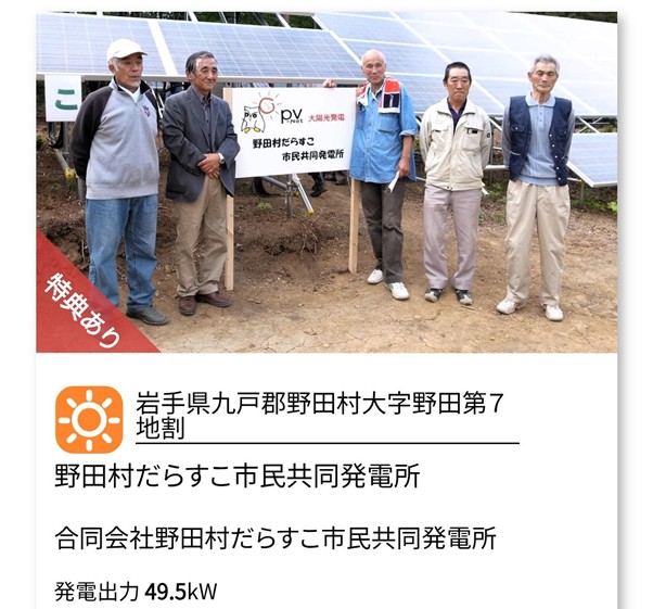 *圖說:供電給人人電力的電力生產者之一,由311東日本大震災災民發起,位於岩手縣的野田村貓頭鷹市民電廠。
