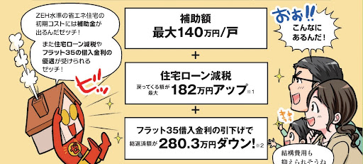 *圖說:之前日本政府宣導ZEH水準房屋時,提供了補助、房貸的減稅與降息等種種優惠。(來源:國土交通省)