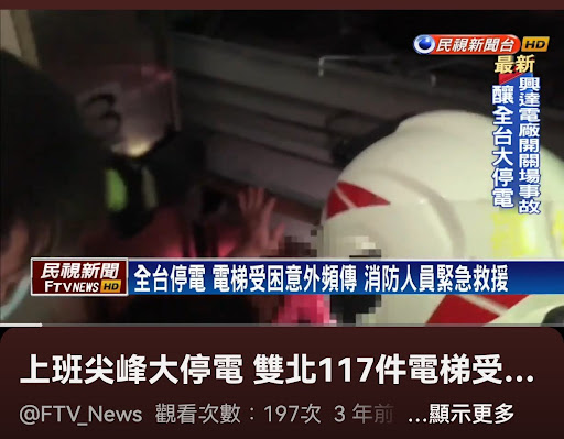 *圖說:2022年3月全台大停電,多處電梯受困。(來源:民視)