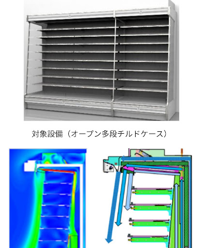 前述的「日本7-11三郷彦成2丁目店」,之所以購電能減少六成,得益於多樣豐富的節能設計。例如,其開放式冷藏櫃,有三重空氣窗簾,隔絕外部的空氣,保持低溫冷藏(上圖)。