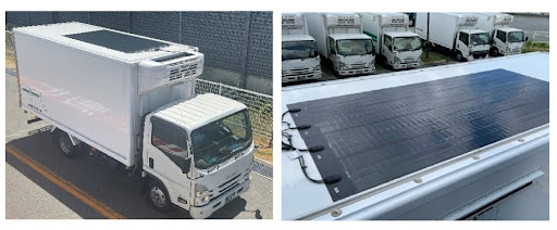 原本日本7-11在旗下23棟物流中心的屋頂,已經把太陽能板鋪好鋪滿(上圖)。2023年底,在福岡縣開始實證實驗,物流貨車在車頂裝設太陽能板的效果,並於隔年8月擴大到宮城縣與鹿兒島縣。