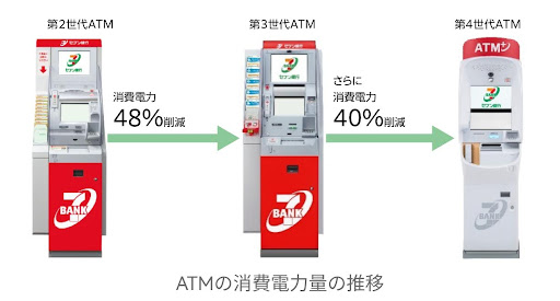 *圖說:日本7-11完成第四代節電ATM的替換。比起2005年推出的第二代,之前的第三代節電48%,而第四代又比第三代節電40%。