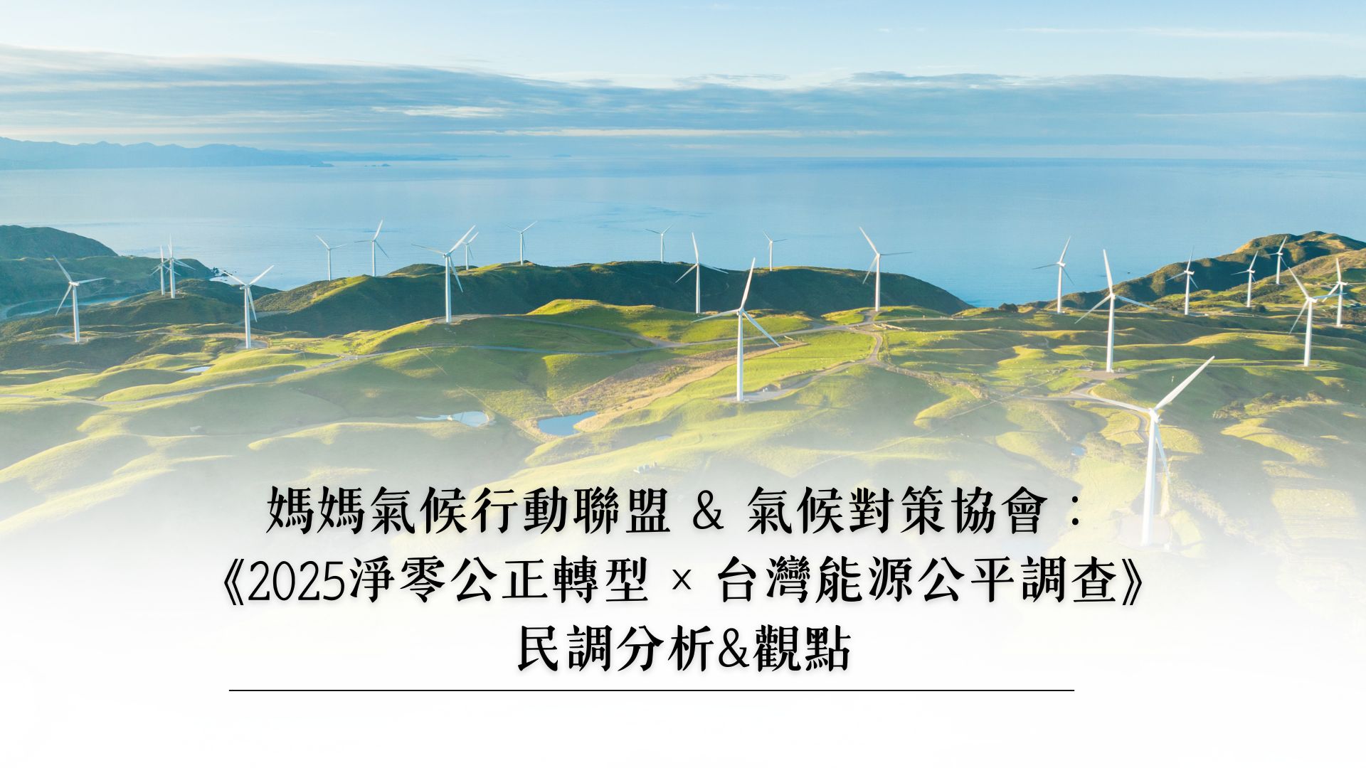 媽媽氣候行動聯盟x氣候對策協會:《2025淨零公正轉型 × 台灣能源公平調查》民調分析&觀點 OCTOBER 30, 2025 民調與研究 面對持續突破高溫紀錄的夏天及越發頻繁的致災性強降雨,我們的準備好了嗎? 本次民調由中央研究院環境變遷研究中心特聘研究員許晃雄老師、媽媽氣候行動聯盟(Mom Loves Taiwan Association)和氣候對策協會(Climate Era Catalyst)共同發起研擬,並與中央研究院人社中心調查研究專題中心合作發起《氣候淨零投資法案民意調查》(以下簡稱「本調查」)。